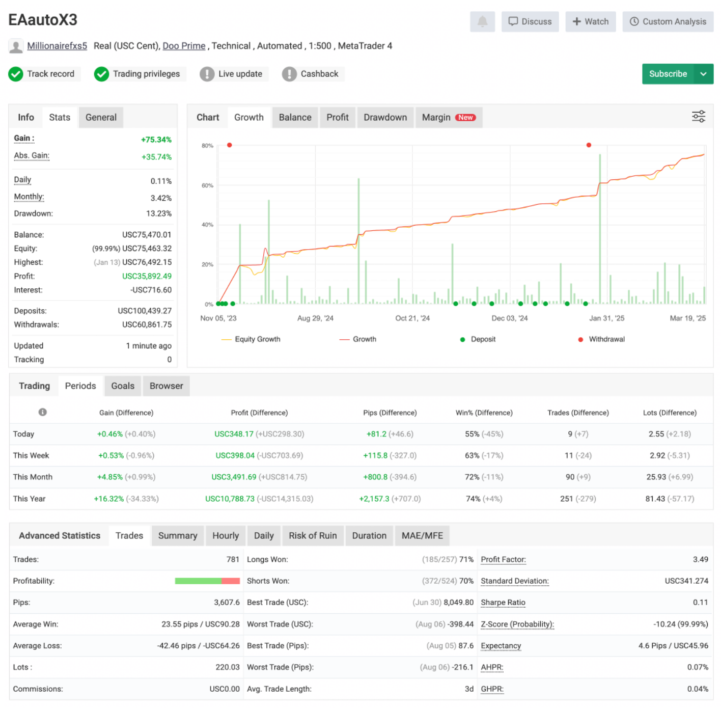 Kết nối với EAautoX3 (X3 Infinity), mọi lệnh giao dịch sẽ được sao chép tự động vào tài khoản của bạn. Không cần theo dõi biểu đồ, không cần phân tích – hệ thống sẽ làm tất cả cho bạn.